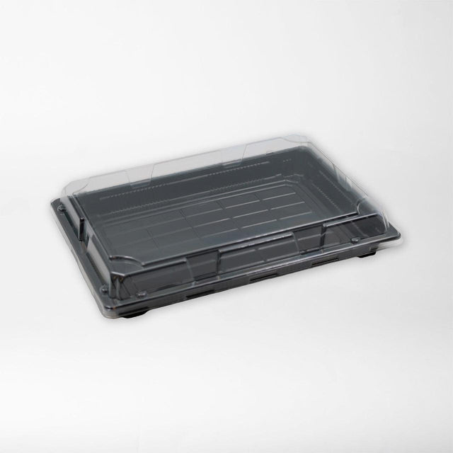 Sushirasia 260x190x50mm on valmistettu PET-muovista. Musta sushialusta on täydellinen valinta, kun etsit pakkausta take away sushien tai sushibuffetin sushien pakkaamiselle. Kierrätä sushirasian pohja ja kansi muovinkierrätyksessä.