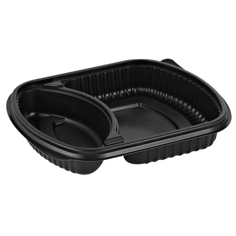 Rosty ruokarasian pohja 2-lokeroinen musta PP-muovi (750ml) + kansi PP-muovi (240kpl/ltk)