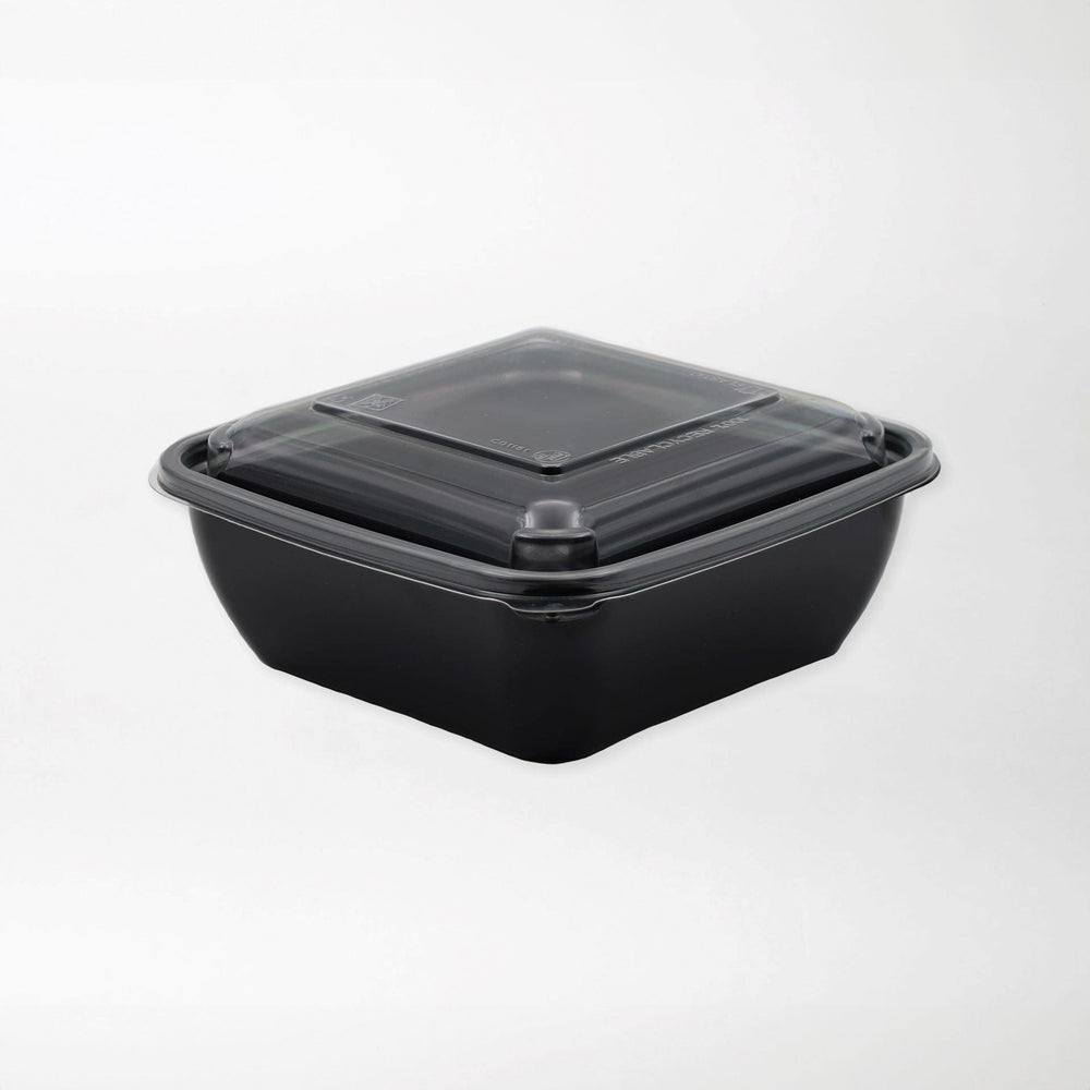 Rosty neliskanttisen annosrasian pohja musta 750ml PP-muovi (160x160x40mm) on valmistettu PP-muovista. lounasrasia on ideaali valinta, kun etsit take away pakkausta lämpimälle kuin myös kylmälle ruoalle. Rasia soveltuu ruoan uudelleenlämmittämiseen mikroaaltouunissa.