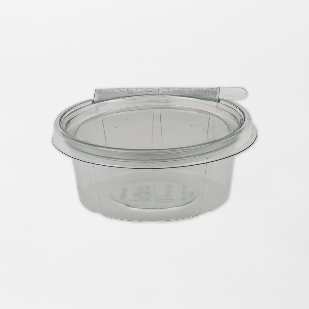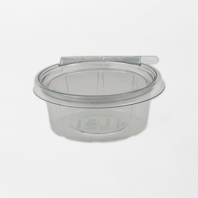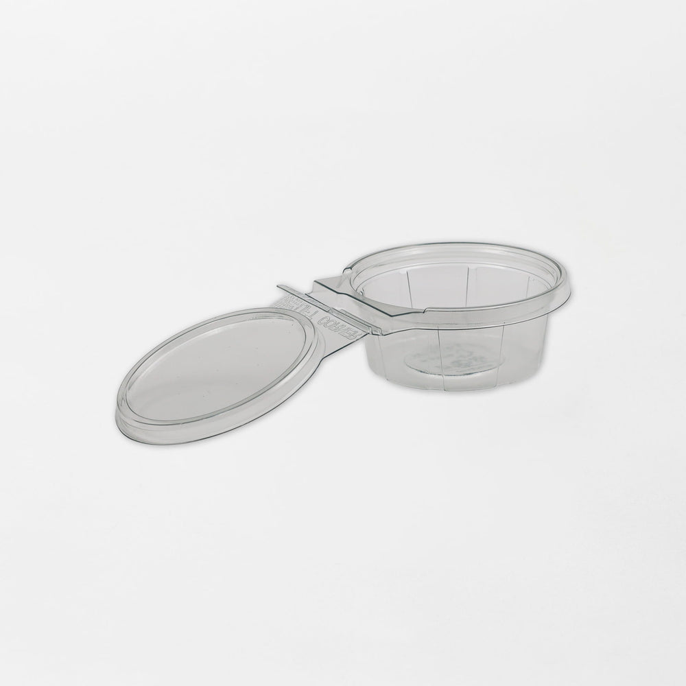 Anti-tamper pyöreä saranakansirasia sinetillä läpinäkyvä 180ml rPET (350kpl/ltk)