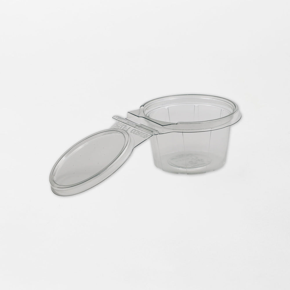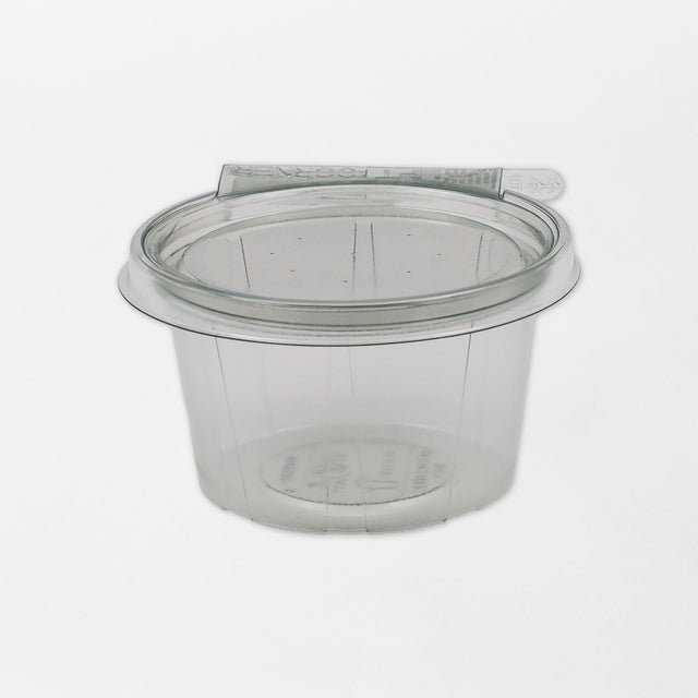 Anti-tamper pyöreä saranakansirasia sinetillä läpinäkyvä 250ml rPET (350kpl/ltk)