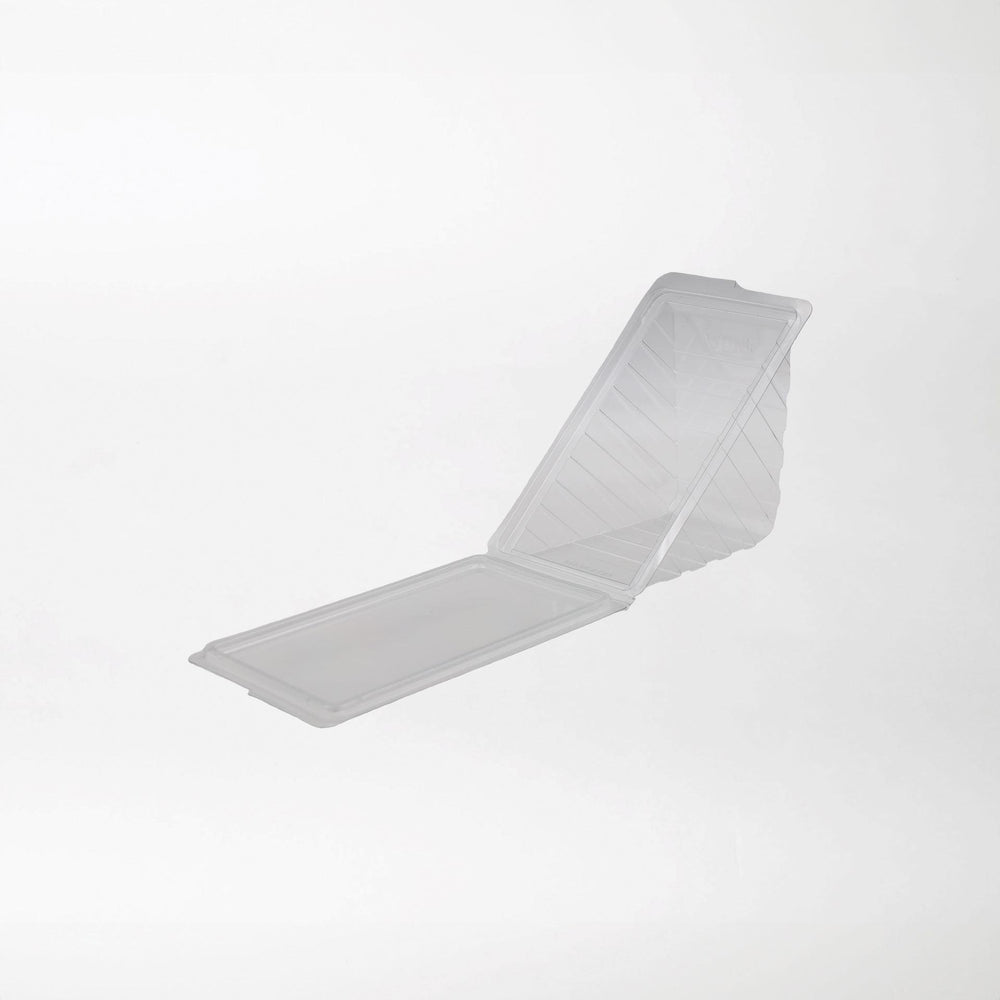Snacky kolmioleipärasia saranakannella läpinäkyvä 185x110x85mm on valmistettu kierrätetystä rPET-muovista. Rasiassa on helposti ja luotettavasti kiinni menevä saranakansi. Kierrätä kolmioleipärasia muovinkierrätyksessä.