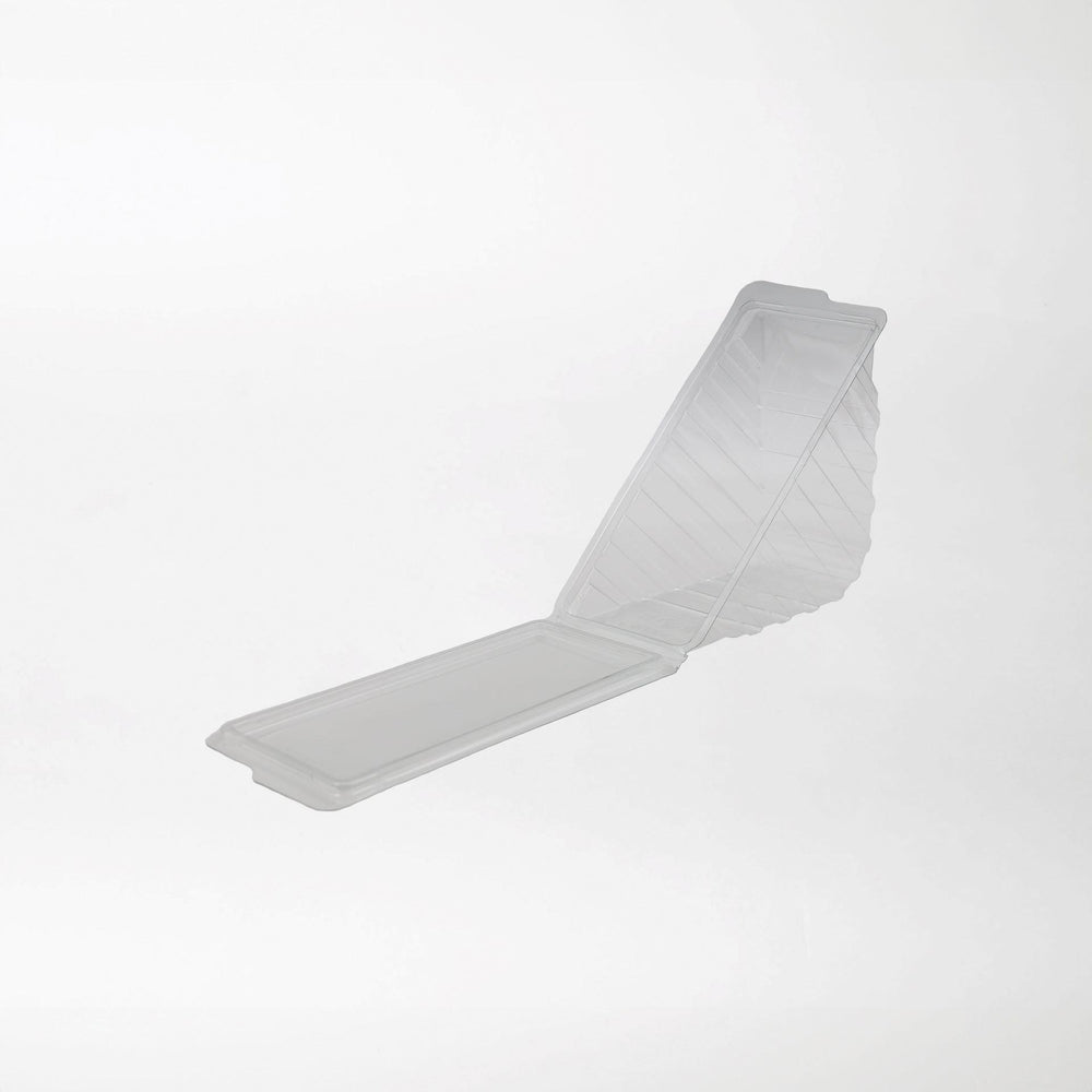 Snacky kolmioleipärasia saranakannella läpinäkyvä 185x90x85mm on valmistettu kierrätetystä rPET-muovista. Rasiassa on helposti ja luotettavasti kiinni menevä saranakansi. Kierrätä kolmioleipärasia muovinkierrätyksessä.
