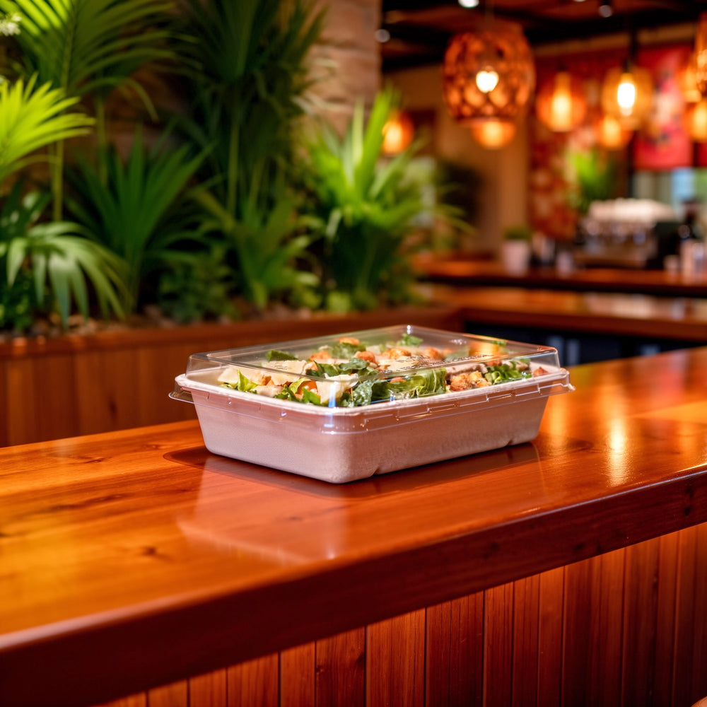 NoiBIO suorakulmainen bagassikulho 840ml on erinomainen valinta, kun etsit on käytännöllistä sekä ympäristöystävällistä pakkausratkaisua take away ruoalle. Salaattikulho on valmistettu sokeriruo’osta, joka on 100% uusiutuva materiaali sekä samalla myös täysin kompostoituva. Pakkaa bagassi kulhoon esimerkiksi salaatit, "poke- tai sushibowlit". Valitsemalla kulhomme käyttöösi panostat samanaikaisesti laatuun että ympäristöön.