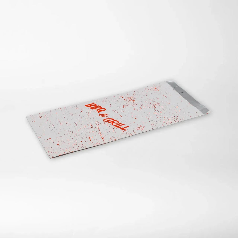 Alumiinilla vuorattu grillipussi "BBQ&GRILL" 150x65x300mm tarjoaa tehokkaan lämpöeristyksen, säilyttäen elintarvikkeet lämpiminä pidempään. Alumiinipussi soveltuu erinomaisesti vähittäiskauppojen, grillien, sekä ravintoloiden käyttöön.