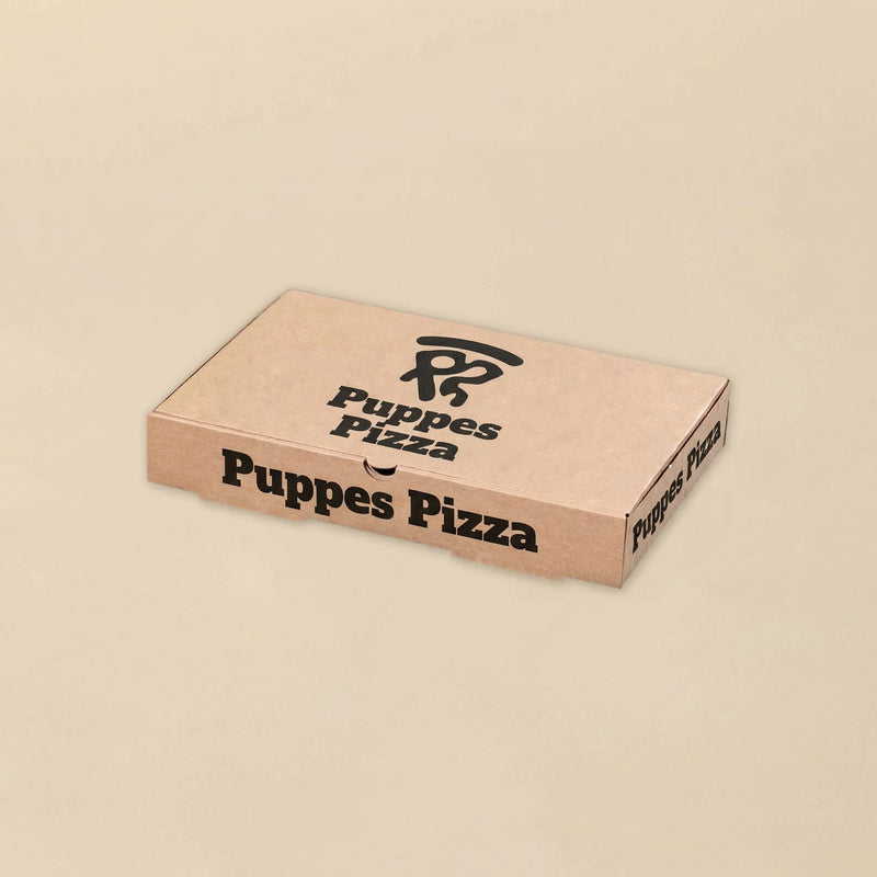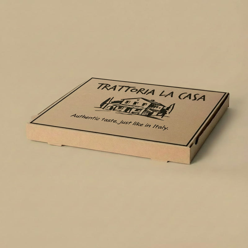 The Pizza Box Mod.A is a single-lid pizza box model. The pizza box has ventilation holes at the back and one ventilation hole at the front.
