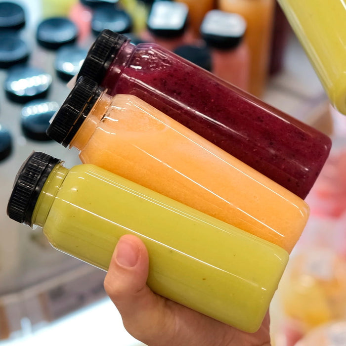 Muovipullot sekä hedelmä-ämpärit tuoremehujen ja muiden hedelmien pakkaamiseen. Pullot ovat valmistettu kierrätettävästä PET-muovista. Mehupullot sopivat tuoremehun pullottamiseen ja muiden hiilihapottomien juomien kuljettamiseen ja säilyttämiseen.